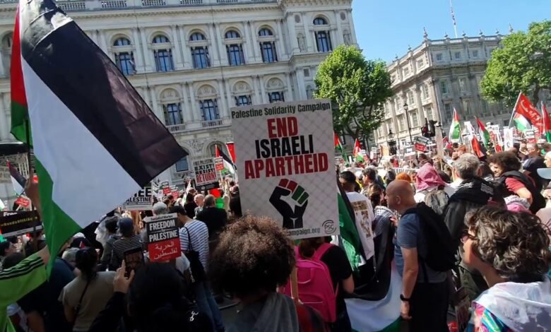 تظاهرة حاشدة للجالية العربية في دبلن تضامناً مع فلسطين ومطالبة بتمرير قانون “الأراضي المحتلة”